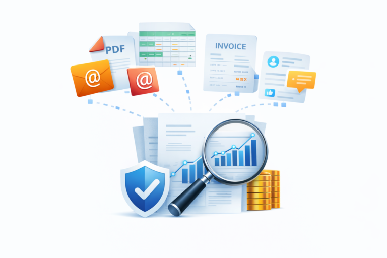 Most critical business data lives in PDFs, emails, contracts, invoices, spreadsheets and often in social media —